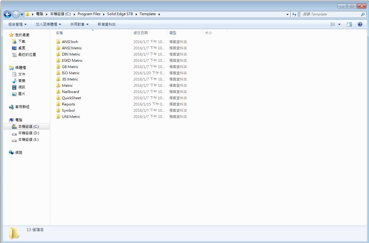 ※ 範本路徑如下: C:\Program Files\Solid Edge ST8\Template