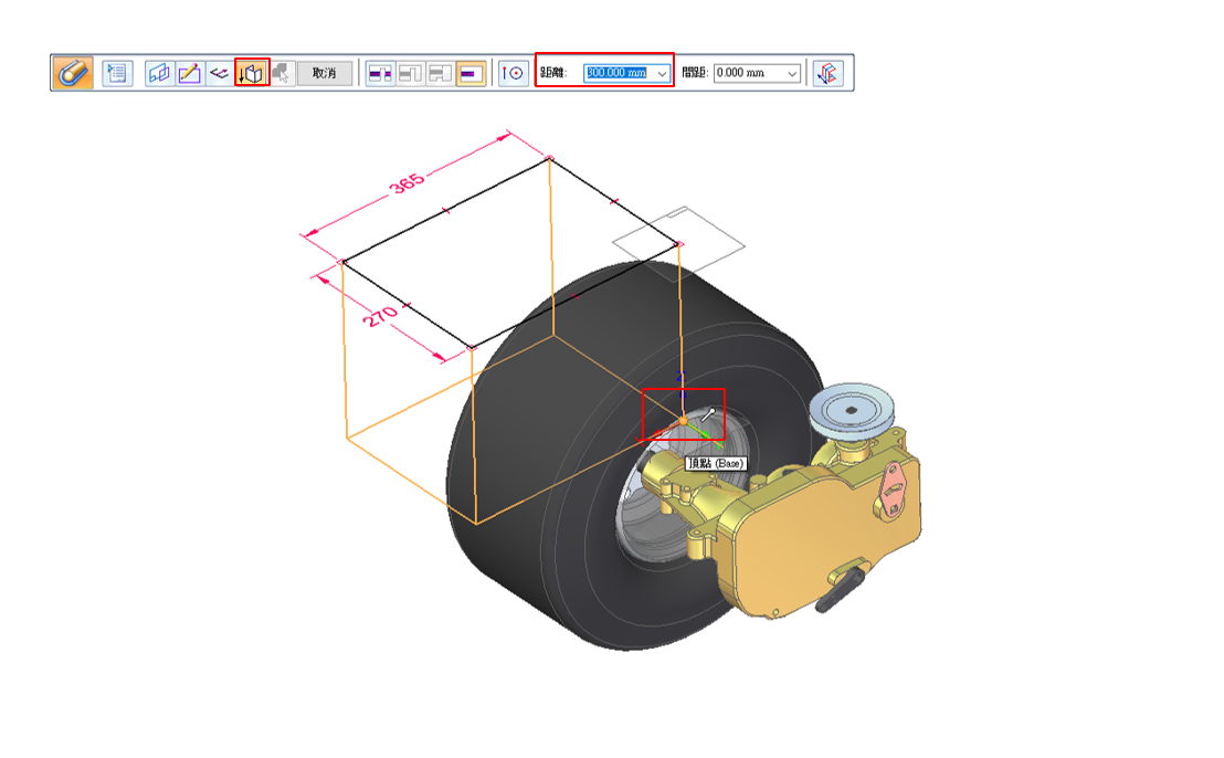 選取【平行面】→選取【基本參照平面】→【距離】輸入尺寸,建立草圖平面。