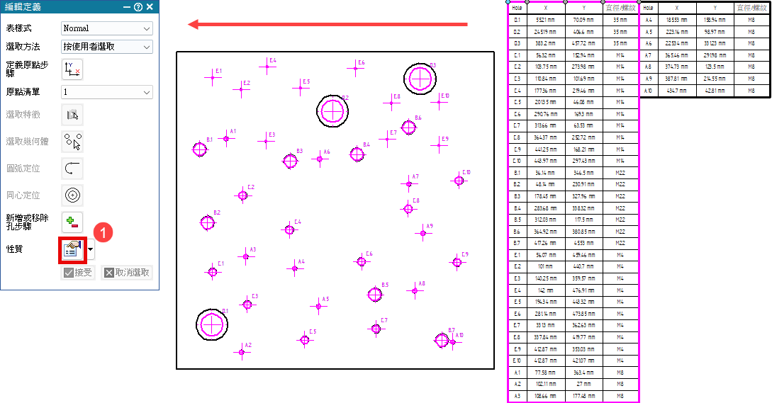 在建立孔表格時,可先參考技術專欄「Solid Edge 工程圖–孔表格」了解整個建置流程。