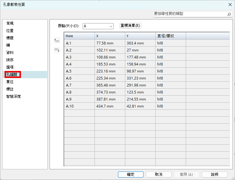 Solid Edge 孔表格項號排序調整方式 – 2025/12/19