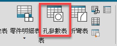 Solid Edge 工程圖環境中,在「表」群組中,點擊「孔參數表」,生成孔參數表。