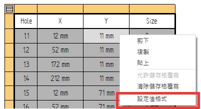 若需將公差「上下限」設定為相同數值,在欲修改的儲存格上,「左鍵」連續點擊兩下,使表格變色 (代表編輯狀態),接著,點擊滑鼠右鍵並選擇「允許儲存格覆寫」。