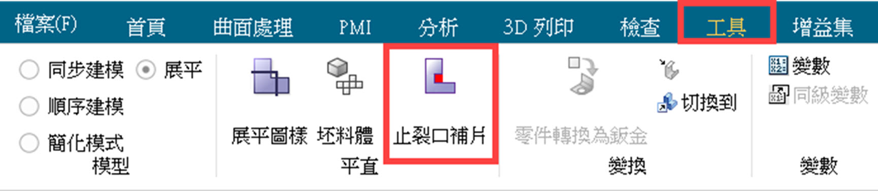 Solid Edge 止裂口補片 – 2023/03/24 24 三月 Posted by Monica Category: 鈑金 無迴響 Solid Edge 鈑金環境中的「止裂口補片」,可修補展平圖樣內因3D產生,製造過程中所不需要的止裂口。 步驟1 步驟2 步驟3 步驟4 步驟5 步驟6 步驟7 首先繪製出鈑金模型。 接著至「工具」,選擇「展平」將模型展平如下圖。 接下來選擇「工具」內「止裂口補片」將不需要顯示在展平圖內的止裂口填補。 (展平後止裂口補片才會亮顯)。 選擇展平需填補止裂口處(手動點選或按a全選都可)。 手動點選 自動全選 也可選擇「繪製輪廓」進入「草圖」繪製展平要填補的區域進行填補,完成後退出草圖。 回到「止裂口補片」點擊打勾確定。 即可完成。 未製作 完成 向珊融 Sandy Xiang