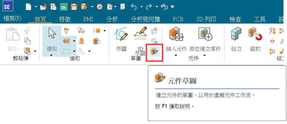 點選「繪製草圖」→ 選定平面後→ 點選「元件結構編輯器」。