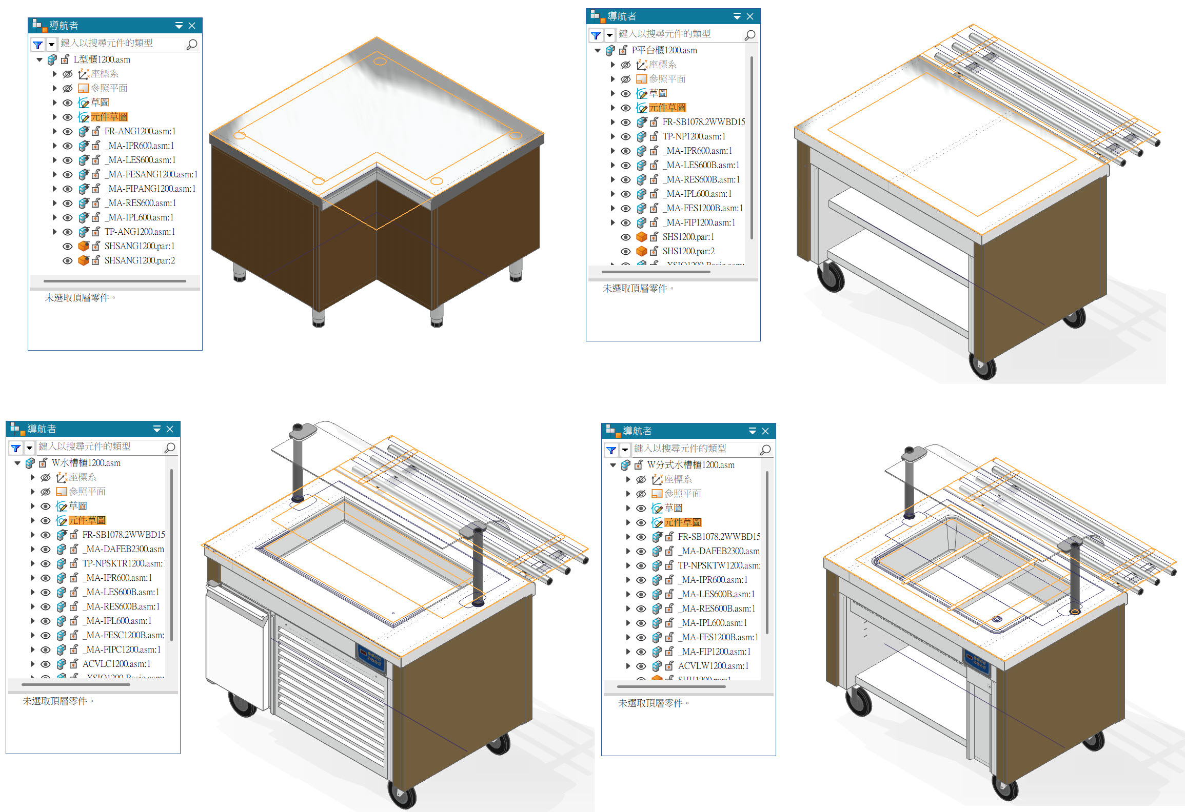 依照步驟一、步驟二,將多組規格設備建立完成元件草圖。