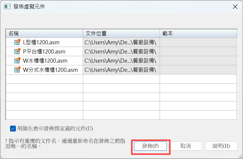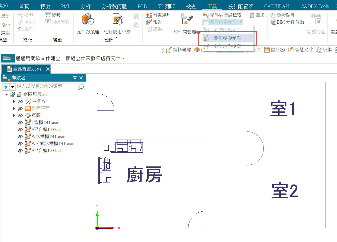 之後若要3D模型化,只要點選「發佈虛擬元件」→「發佈」。
