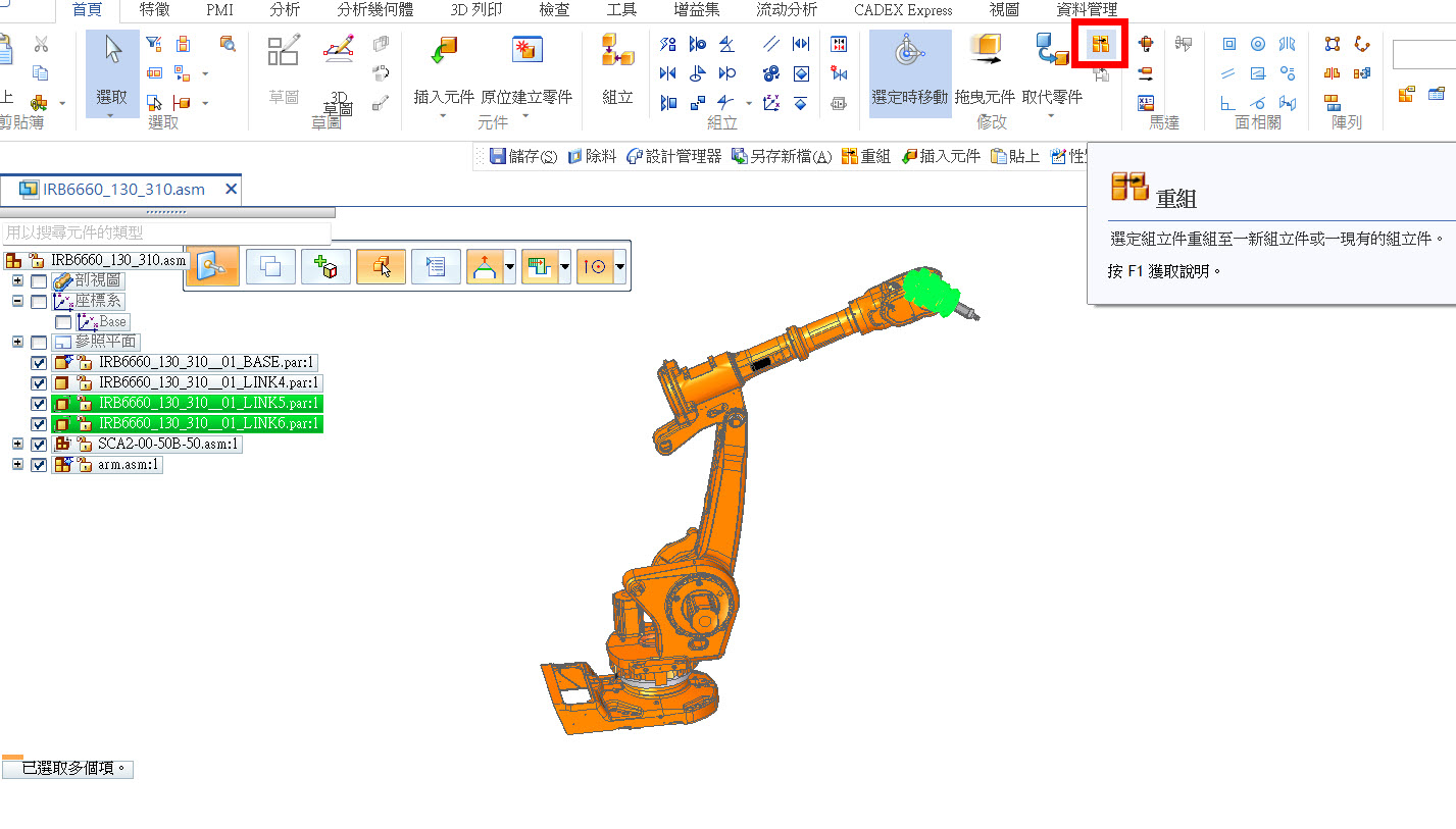 或是,將多個零件集合成一個次組立件,又甚至是, 想打斷階層關係,皆可以透過 重組 及 解散 來作業。