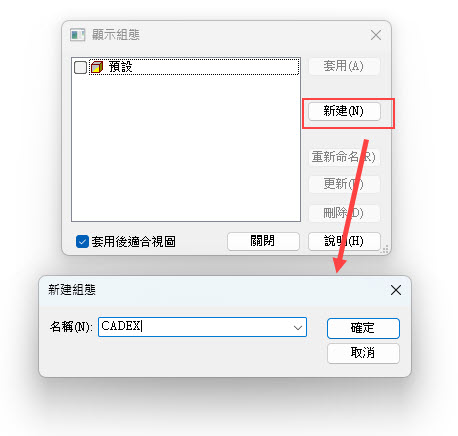 透過「新建」,建立一個新的組態名稱,名稱可自訂。