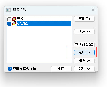 接著,勾選,點選「更新」,讓組態將「目前的顯示設定」儲存起來。